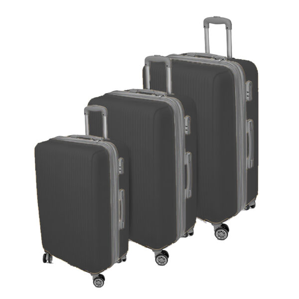 Mykonos Σετ Βαλίτσες Ταξιδιού 3 Τεμαχίων με Διπλές Ρόδες – Κλείδωμα – Γκρι σκούρο
