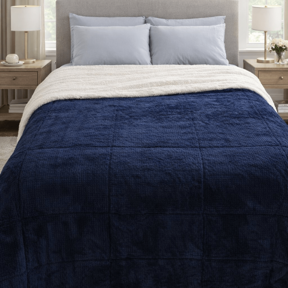 1 + 1 ΔΩΡΟ Κουβερτοπάπλωμα ανάγλυφο velur Πολυτελείας Υπέρδιπλο Ζεστό MIDNIGHT BLUE 240×260 cm
