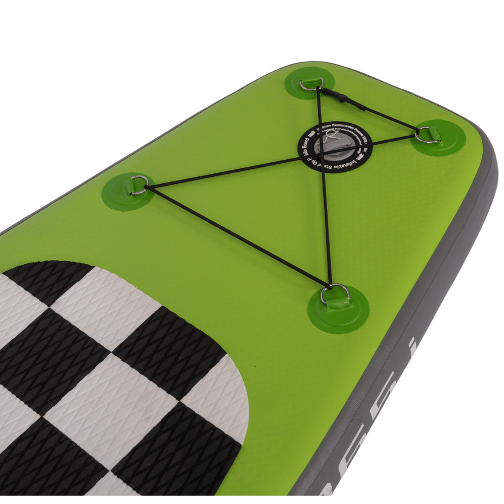 Η φουσκωτή σανίδα SUP είναι σχεδιασμένη για σταθερότητα και ευκολία χρήσης. Χάρη στην τεχνολογία Drop Stitch, η σανίδα γίνεται ιδιαίτερα άκαμπτη όταν φουσκώσει, προσφέροντας εξαιρετική ισορροπία στο νερό.