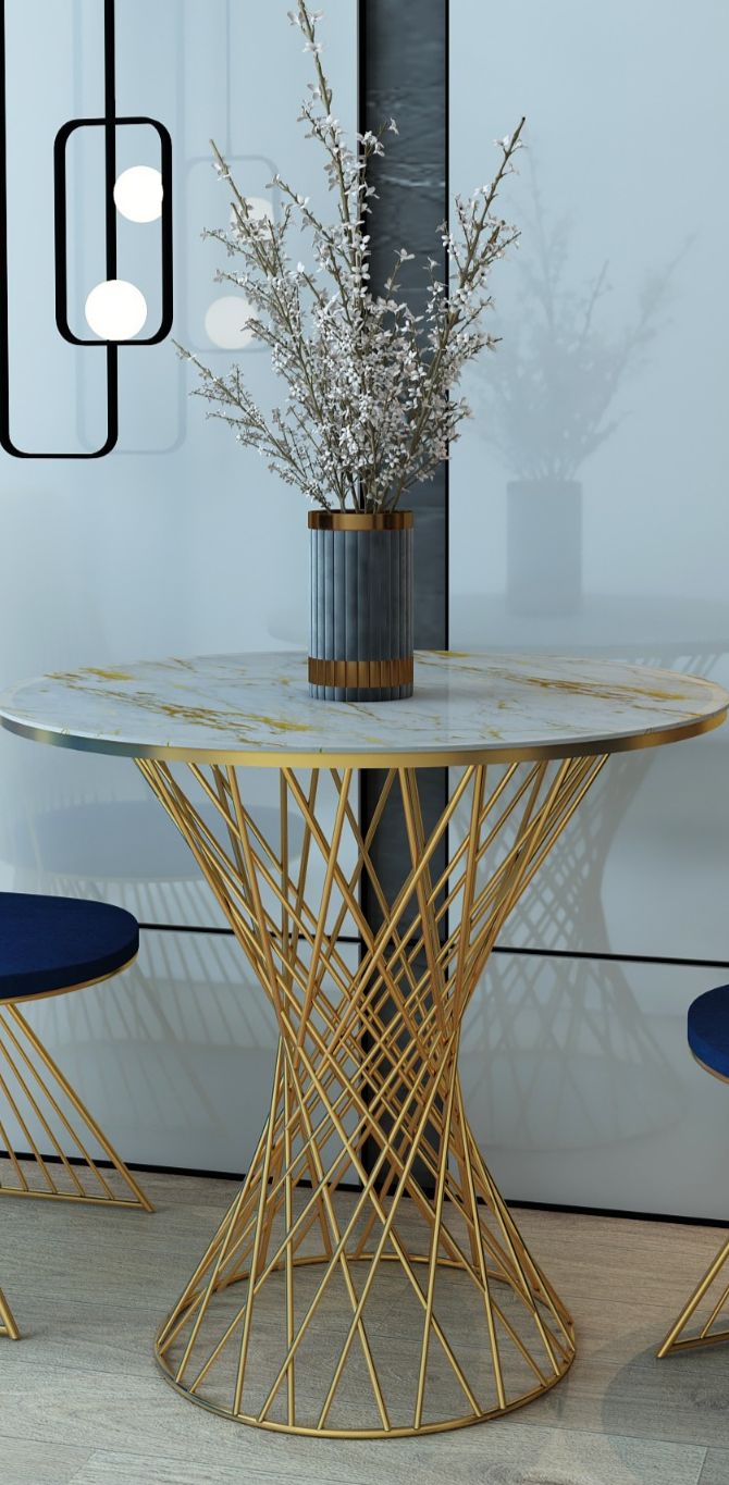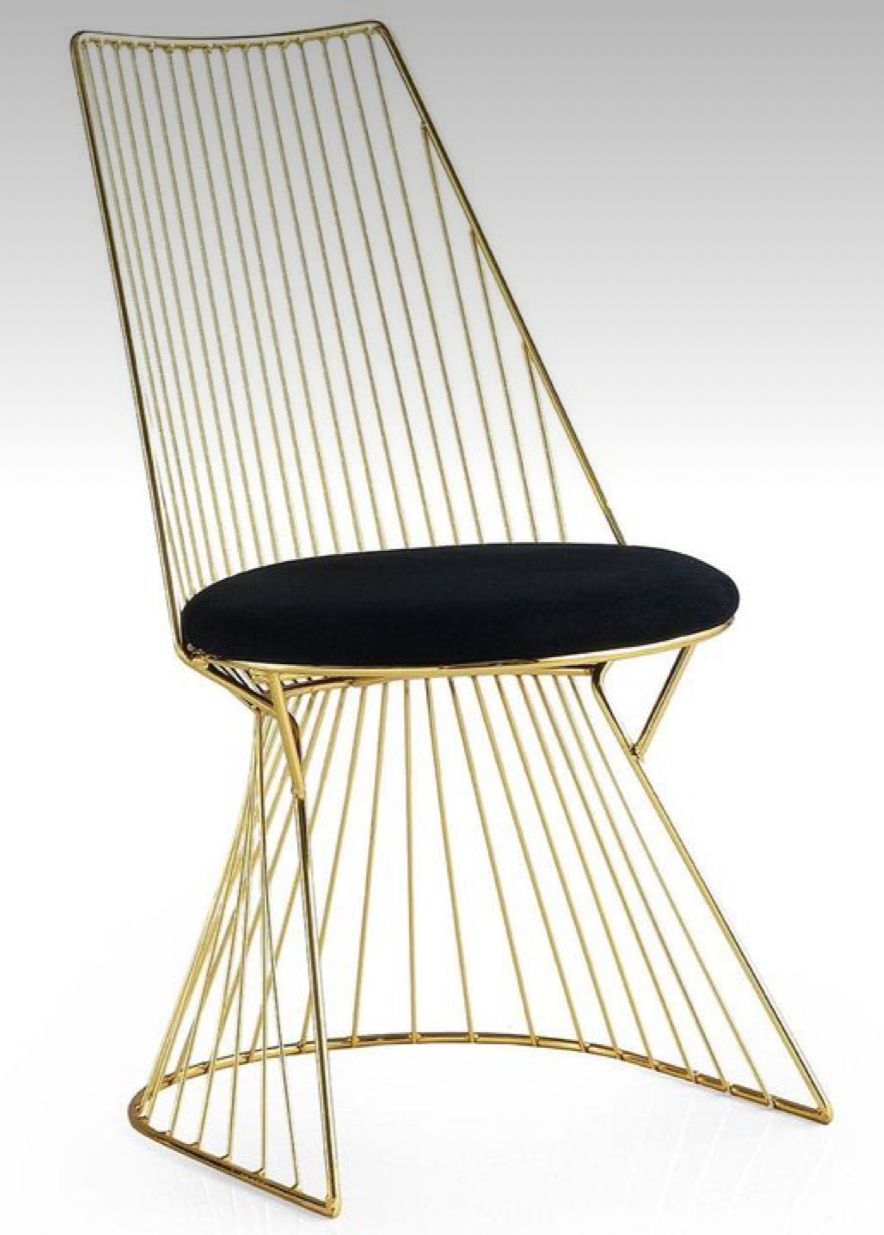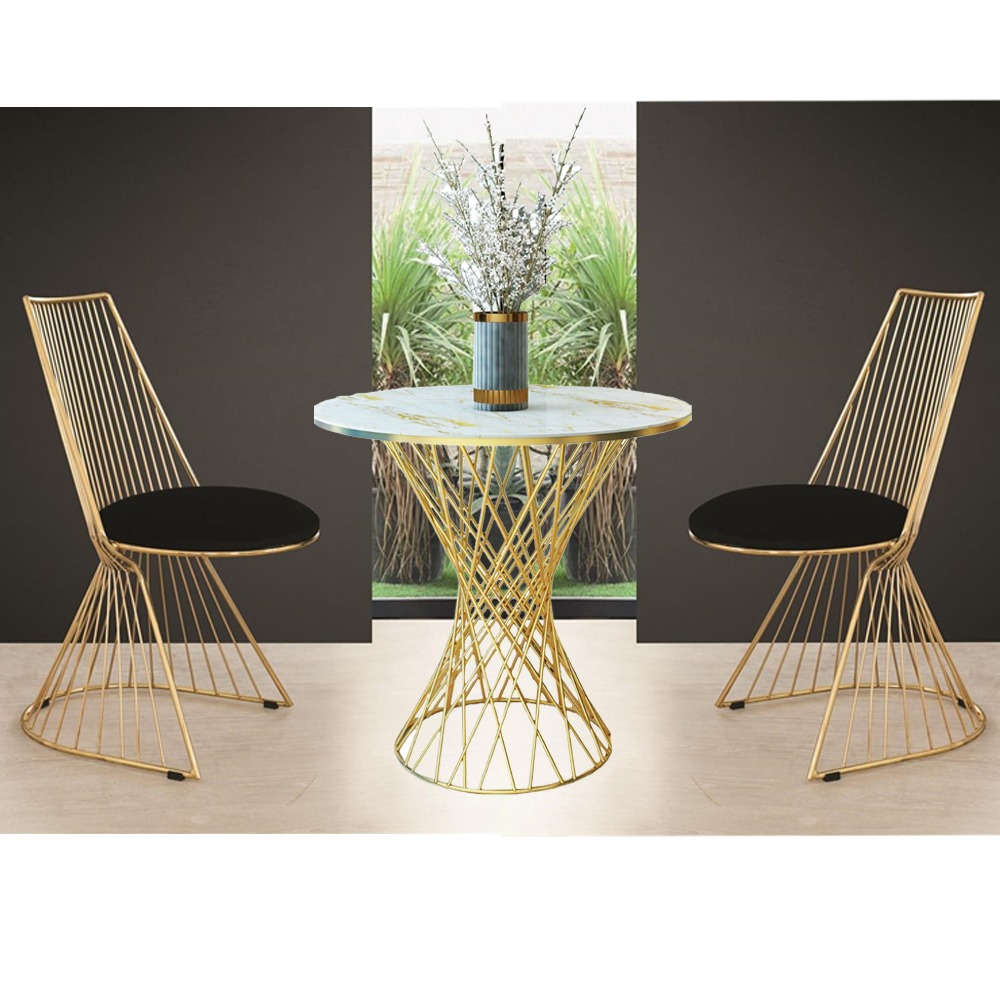 Σετ Τραπεζαρίας ή Σετ Τσαγιού Πολυτελείας για Μικρούς Χώρους – Venezia με κομψό σκελετό σε Χρυσή απόχρωση που συνδυάζεται απίστευτα με το βελούδο του καθίσματος.