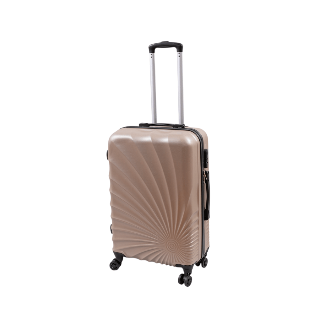 Το σετ βαλιτσών SHELL ξεχωρίζει από τον ακτινωτό, σπειροειδή σχεδιασμό, εμπνευσμένο από τη φυσική δομή του κοχυλιού. Οι γραμμές ανοίγουν αρμονικά από ένα κεντρικό σημείο, δημιουργώντας μια αίσθηση κίνησης, ισορροπίας και φυσικής ροής.